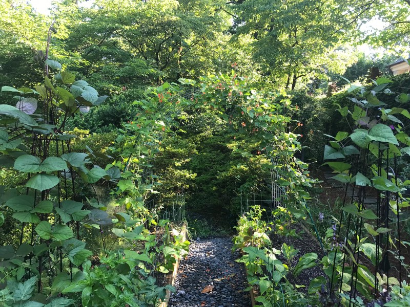 Hello again! It has been too long since I posted here, so this will be longer than usual; my other blog, “Serenity Now: Scents and Sensibilities” has been taking up a lot of time as I’m doing two monthly blogging projects with a blogger friend. And in between, I’ve actually been doing the gardening! I will retire at the end of this month and have been using up vacation days that won’t get paid out, so the garden has gotten much more focused attention lately. I think I’ve finally tamed the vegetable garden; I planted a lot less this spring and have been more regular in pinching off tomato shoots and redirecting wayward morning glory tendrils. My eggplants and herbs have been a major success!
