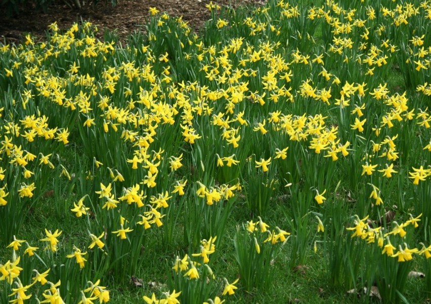 We had a very warm couple of days but then the weather turned gray, gloomy and cold again, with only a sprinkle of snowdrops and one lone narcissus up to prove that I had in fact labored long and hard to plant dozens of new bulbs for this spring. Imagine my delight, then, when I got up this morning to find three whole patches of early daffodils in bloom!