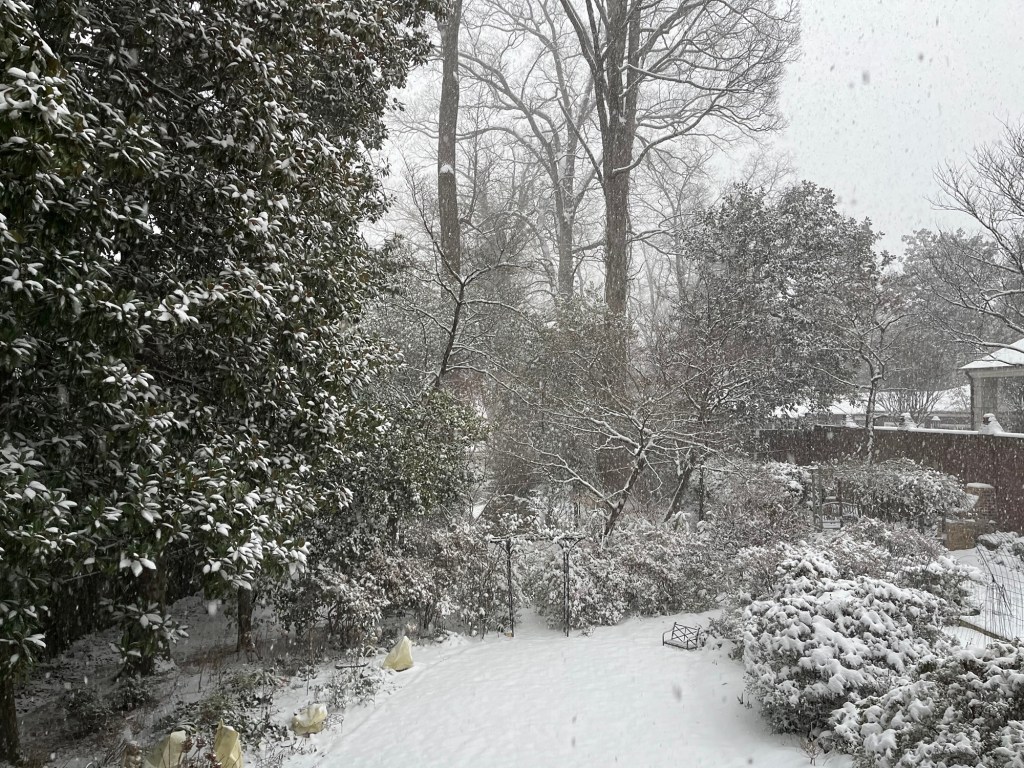 Here in the South, we .i,e to joke that we have twelve or more seasons, which include “first winter”, “false spring”, “second winter”, etc. We are now in the throes of “second winter”, as proven by this morning’s snowfall. It was so pretty as it came down! And now my garden is blanketed in white.