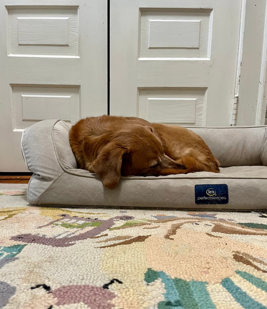 Our elderly dog Lucy is completely unimpressed by the snow, and barely went outside early this morning before it really came down. She prefers her warm bed, the sensible girl!